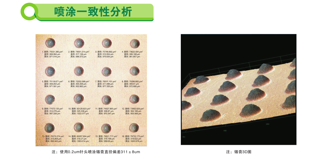 本產(chǎn)品應用在噴涂工藝,具有噴涂工藝窗口寬,出錫量均勻焊點一致性好,錫膏不坍塌成型好等特點。膏體性質(zhì)穩(wěn)定,滿足長時間噴涂要求,可多次冷藏回溫使用。